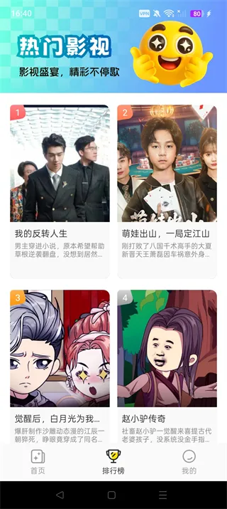 4、热剧排行,等你解锁,通过排行榜了解当前受欢迎剧集,一键收藏随时追更,让追剧清单永不落伍,轻松掌握爆款动态。