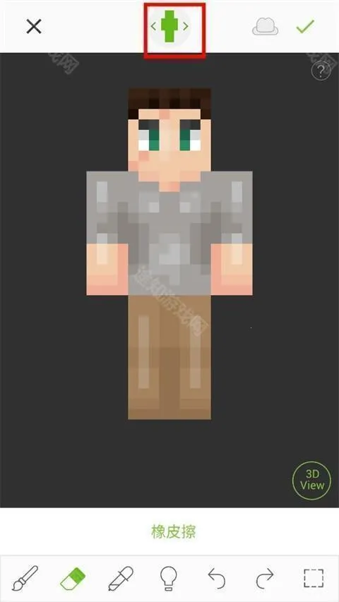6、下面的功能都比较简单,画笔、橡皮擦等等,最后一个小功能提一下,可以复制粘贴我们所做的皮肤,以及垂直翻转和镜像翻转等,都比较的简单和平时编辑图片差不多;