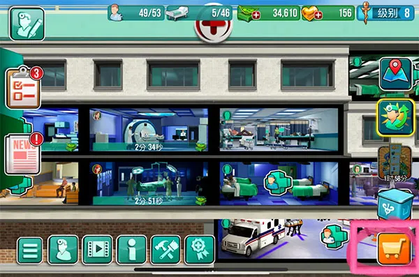 2. 可建设和管理整座医院,建造升级科室、招募医生组建团队、研究新技术,发展成顶级医疗中心。